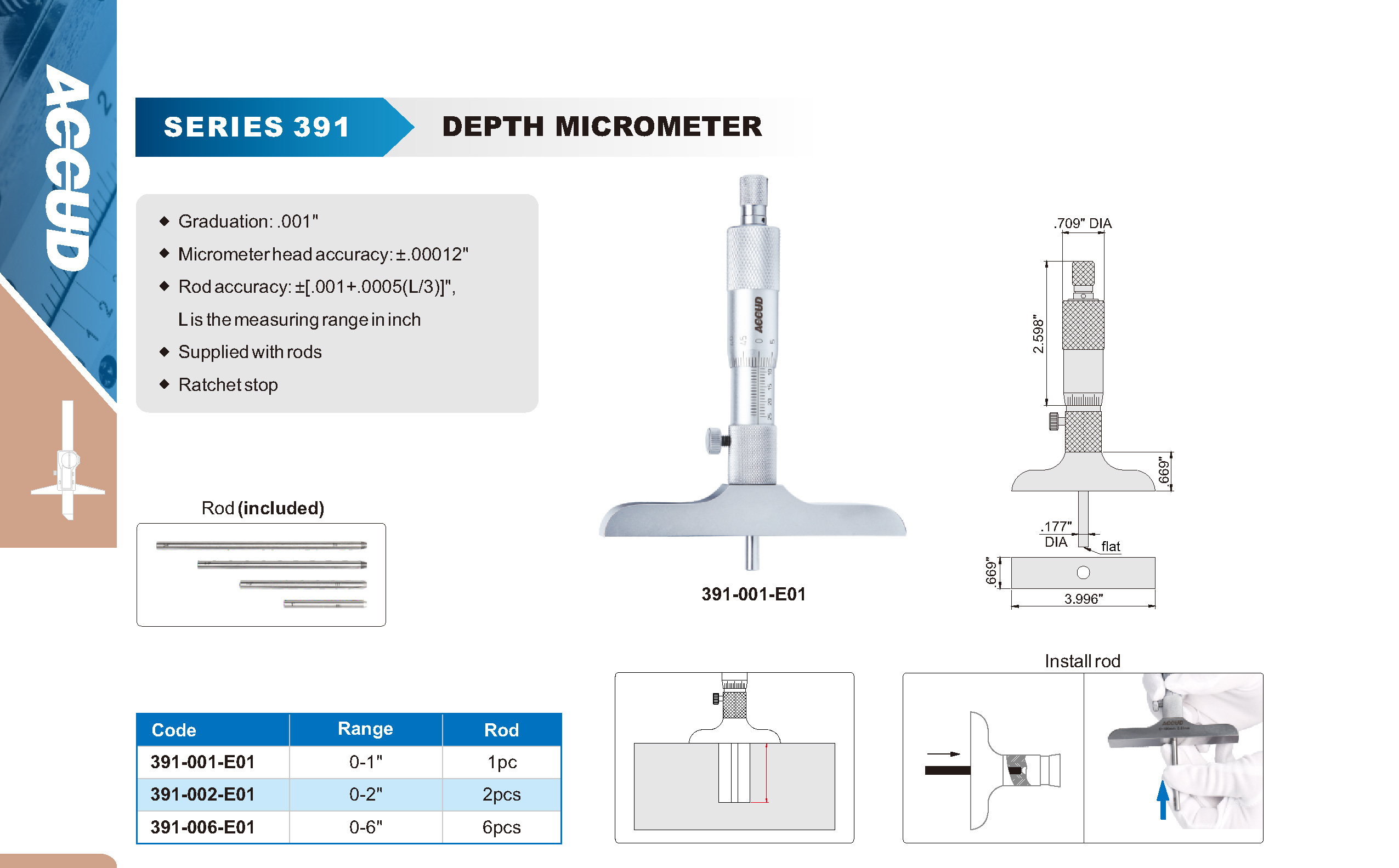 • Type: Inch Depth Micrometer
