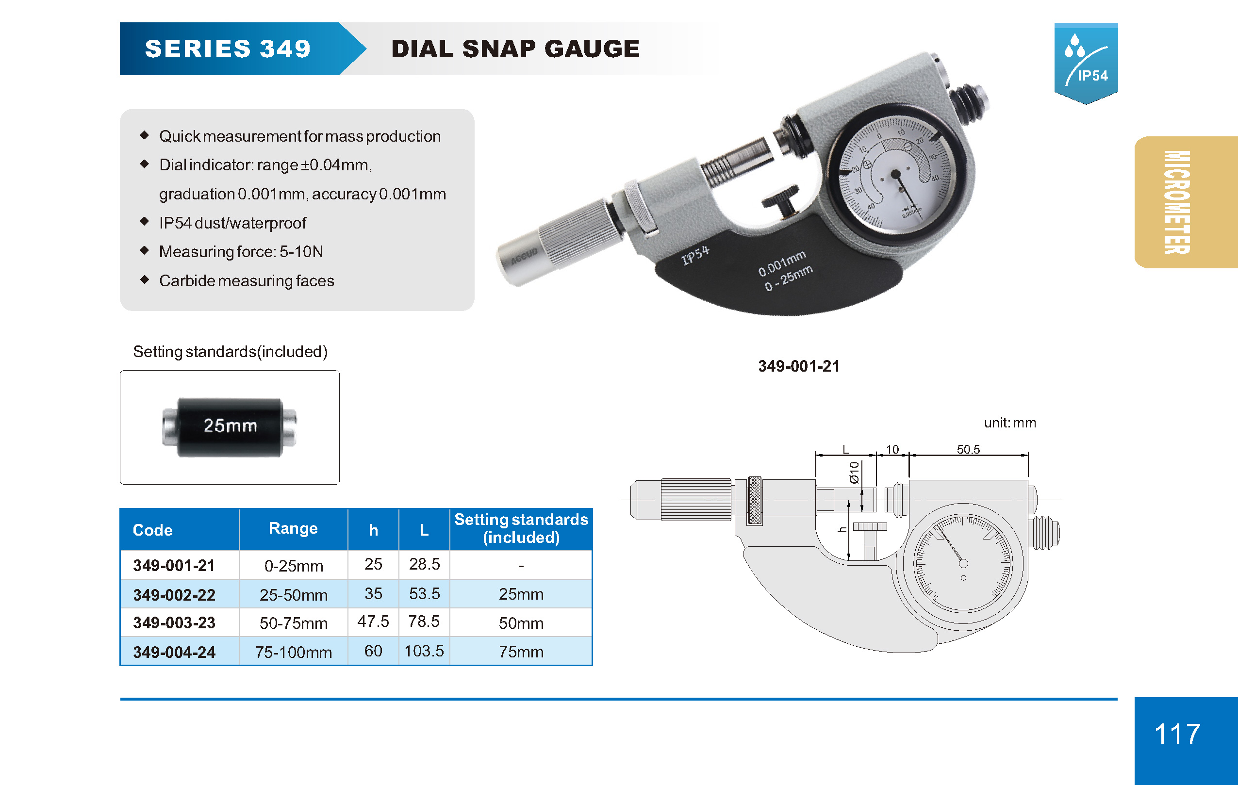 ■ Dial indicator: range ±0.04mm, graduation 0.001mm, accuracy 0.001mm ■ IP54 dust/waterproof ■ Measuring force: 5-10N ■ Carbide measuring faces