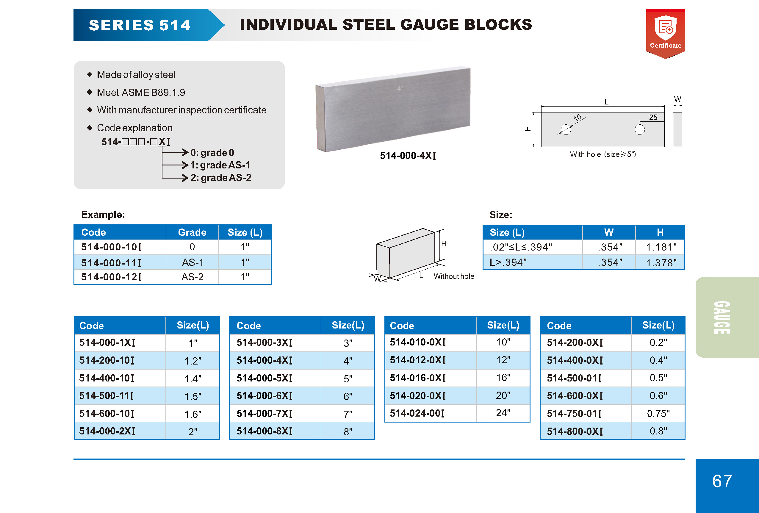 INDIVIDUAL STEEL GAUGE BLOCKS