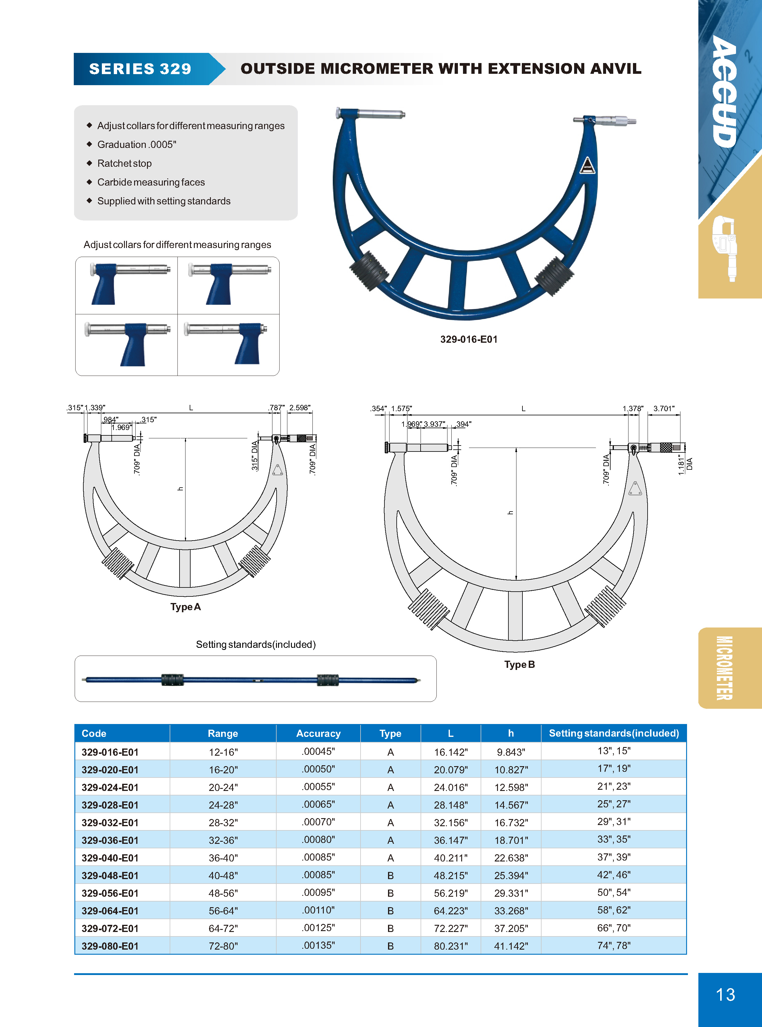 OUTSIDE MICROMETER WITH EXTENSION ANVIL