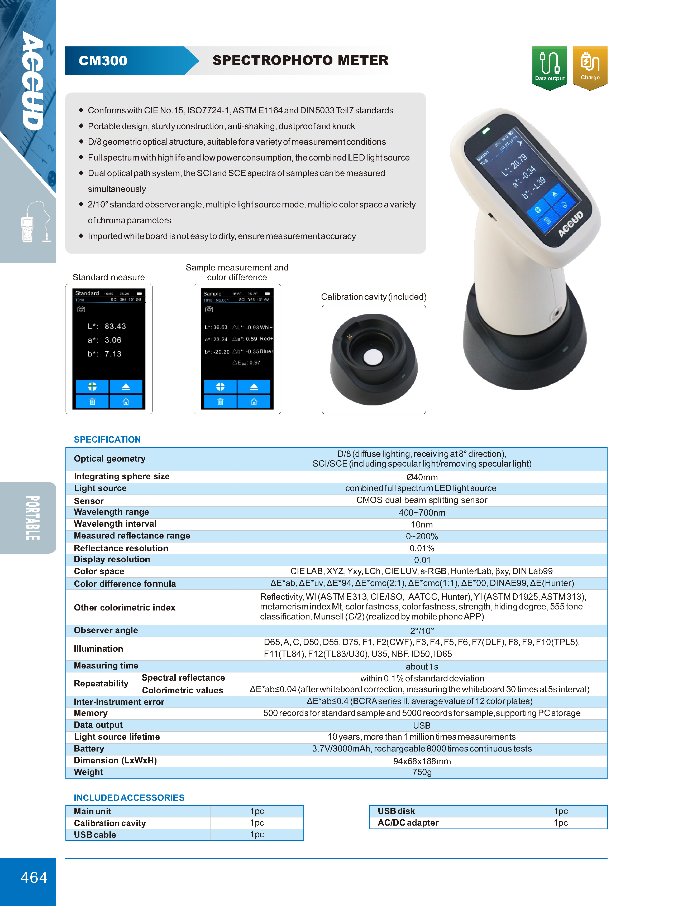 ■ Conforms with CIE No.15, ISO7724-1, ASTM E1164 and DIN5033 Teil7 standards