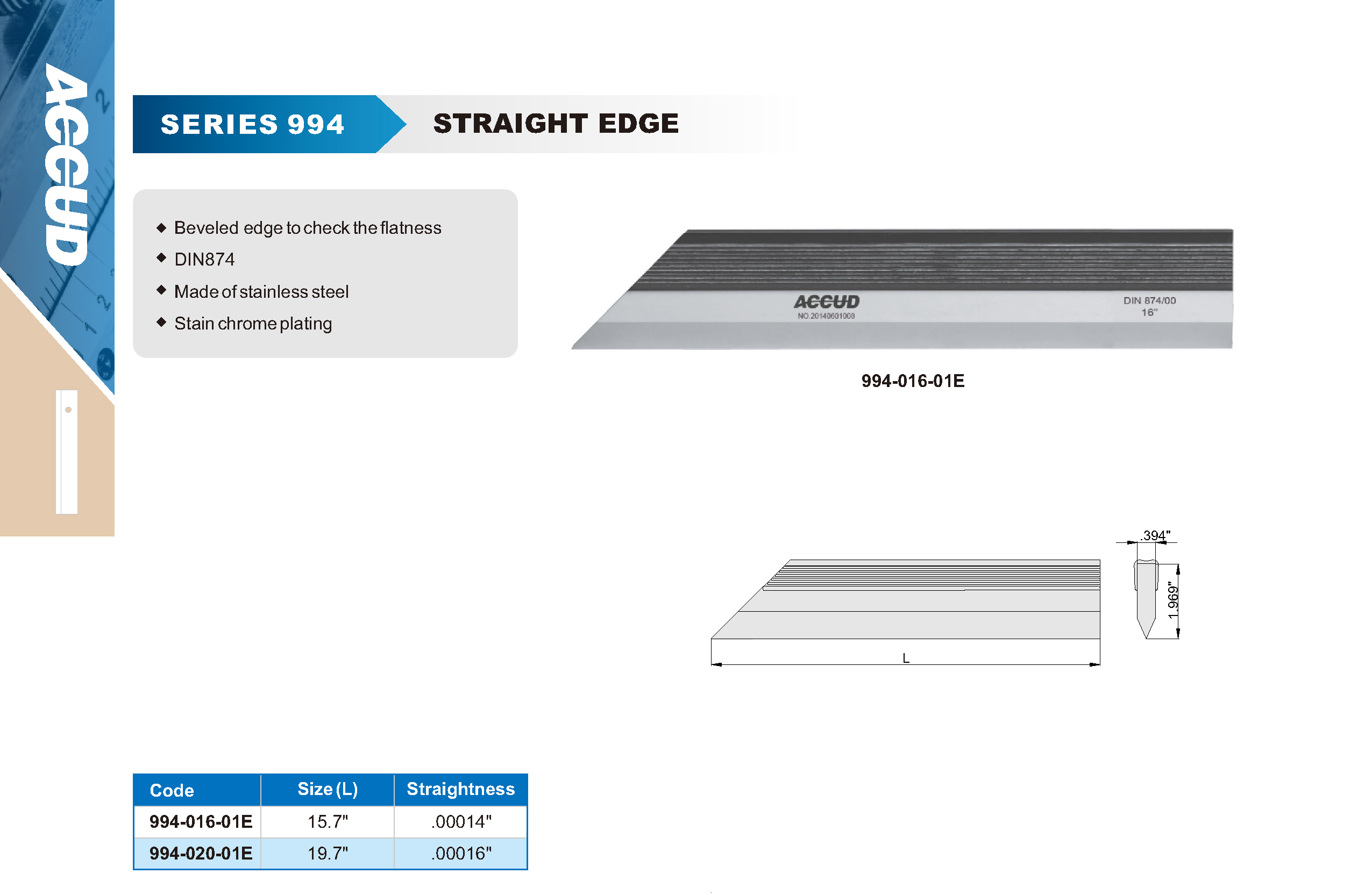 ■ Beveled edge to check the flatness ■ DIN874 ■ Made of stainless steel ■ Stain chrome plating