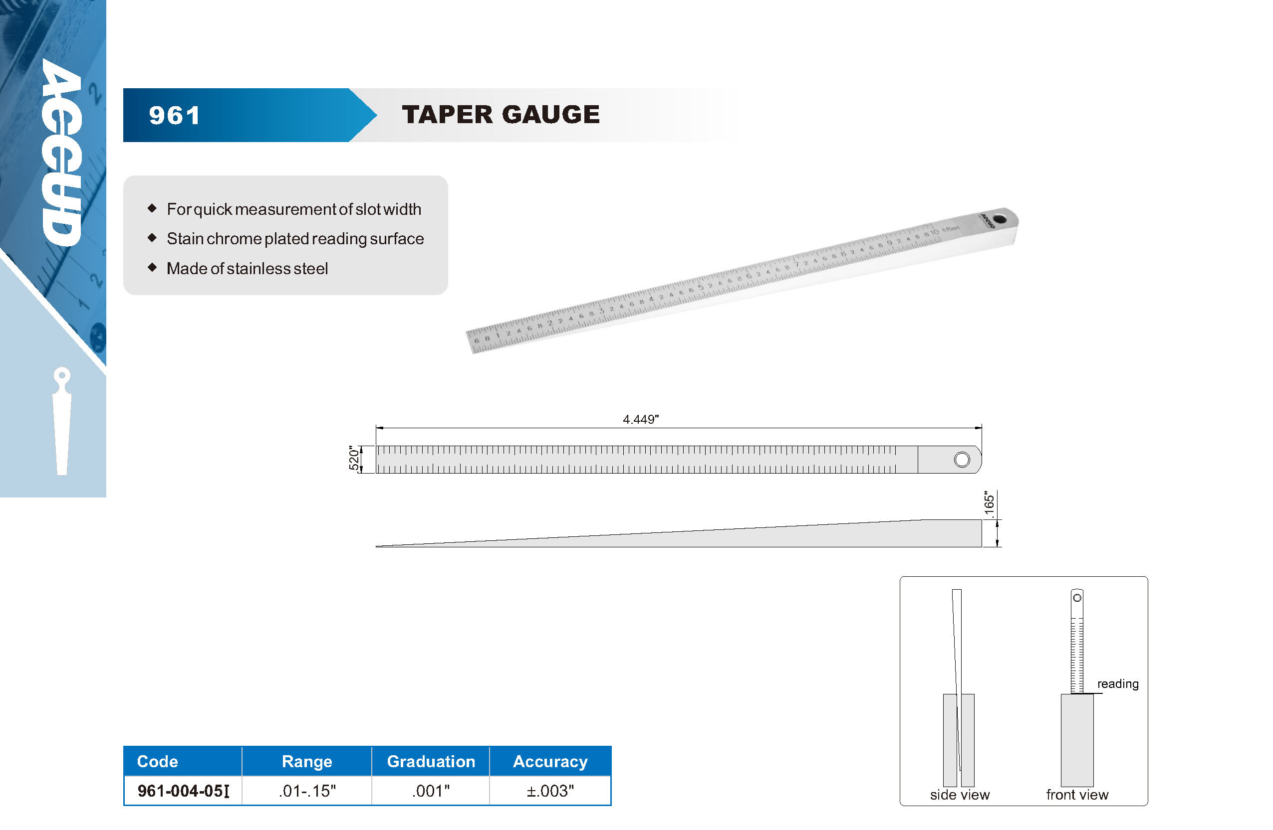■ For quick measurement of slot width ■ Stain chrome plated reading surface ■ Made of stainless steel